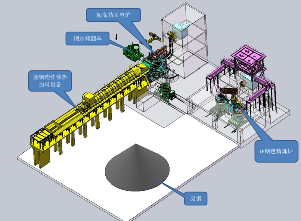 北方重工集團有限公司在消化吸收國內外技術基礎上,開發的60t至150t超高功率電弧爐、LF鋼包精煉爐及廢鋼水平連續預熱加料設備具有連續加料、連續預熱和連續冶煉的工藝特點,實現了煉鋼生產的高效、低耗和環保,主要應用于鋼鐵冶金、機械鑄造、新材料等領域。
