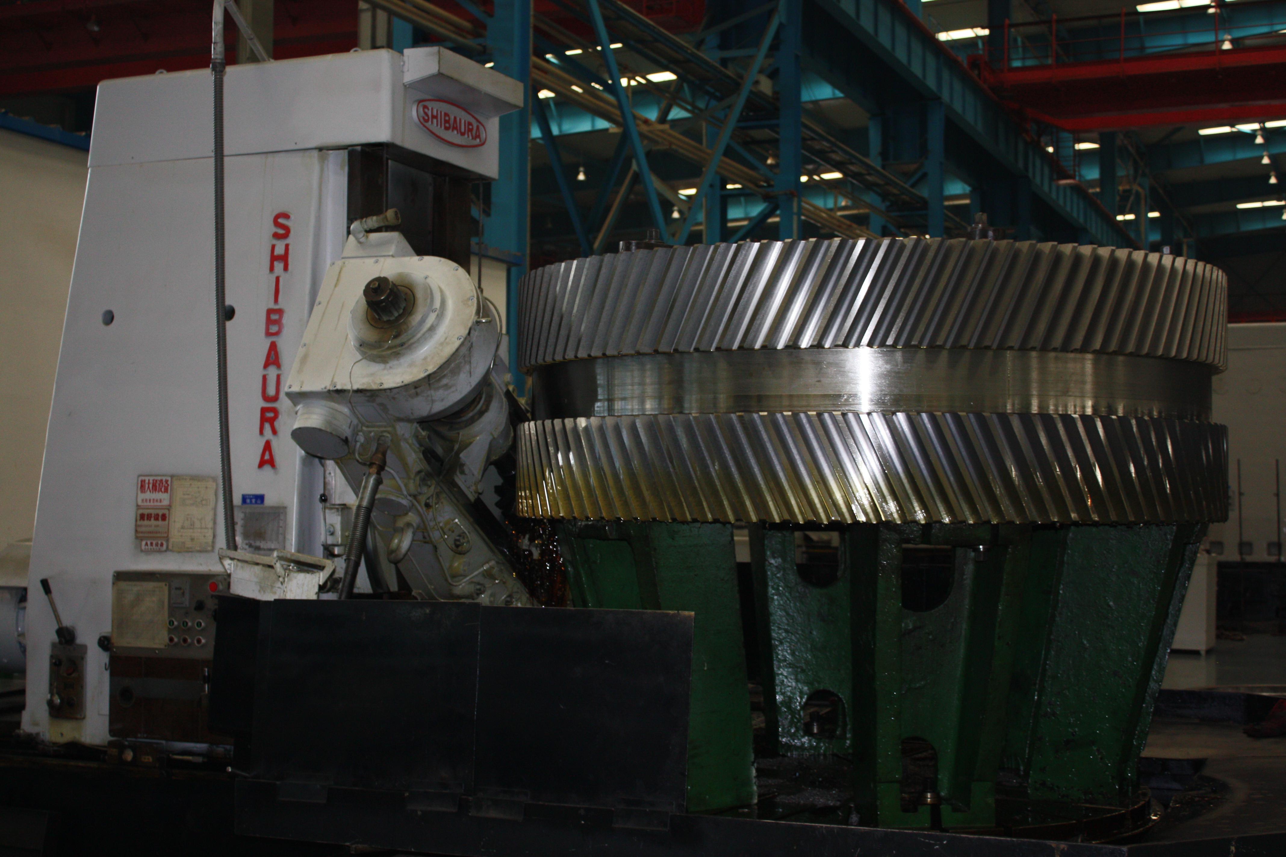 我公司有3000mm以上大型滾齒機10臺,其最大加工直徑14000mm;最大模數(shù) 40—50mm(與使用刀具有關(guān));最大齒寬2300mm。