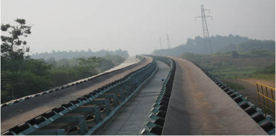 我公司所生產的帶式輸送機,首先是運行可靠,在許多需要連續運行的重要的生產單位,如發電廠煤的輸送,鋼鐵廠和水泥廠散狀物料的輸送,以及港口內船舶裝卸等均采用帶式輸送機。其特點動力消耗低,使用過程中阻力小,對貨物的磨損和破壞均小,生產效率高。不僅在煤廠、鋼鐵廠和礦廠運用輸送機,還在小型隧道內均可以使用,長度短則幾米,長可達10米以上,也可以架設在地面交通混亂和危險地區的上空。如在一點或多點受料.也可以向多點或幾個區段卸料,需要時,還能把各堆不同的物料進行混合。